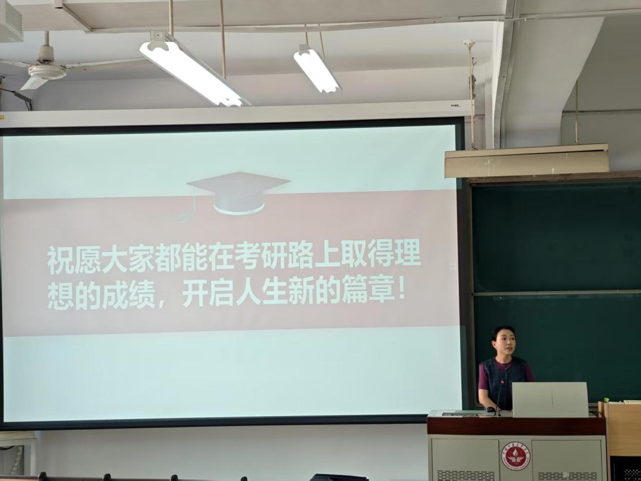 本科2022级辅导员曹洪治主持动员大会。学院正处级组织员夏云就近两年的学院就业整体情况做了通报,对学校的推免政策,尤其是管理岗2+2推免政策做了深入解读,针对当前两个专业面临的考研竞争压力大、报考专业方向不明确等问题做了深入分析,鼓励同学们科学、合理报考。