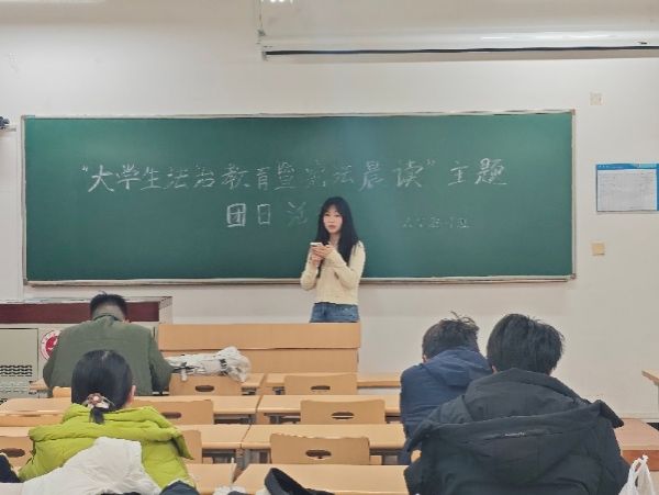 本次活动创新构建“骨干领学+案例导学+集体研学”三维实施模式,让法治学习既有深度又接地气。各班级班长、团支书化身普法骨干,紧密结合大学生活实际,精选网络诈骗防范、知识产权保护、校园纠纷化解等典型案例,通过“案例拆解+法条对照”的方式进行深度剖析,将抽象的法律条文转化为可感可知的鲜活教材,帮助同学们快速理解法律适用场景。在集体研学环节,全体学生齐声诵读宪法核心条款,铿锵有力的誓言在校园中回荡,以仪式感强化法治记忆;围绕人工智能领域数据安全、算法伦理等前沿法律问题设置的“法治热点研讨”,则激发了同学们的思辨热情,大家各抒己见、交流碰撞,实现了“学法、懂法、用法”的有机统一。
