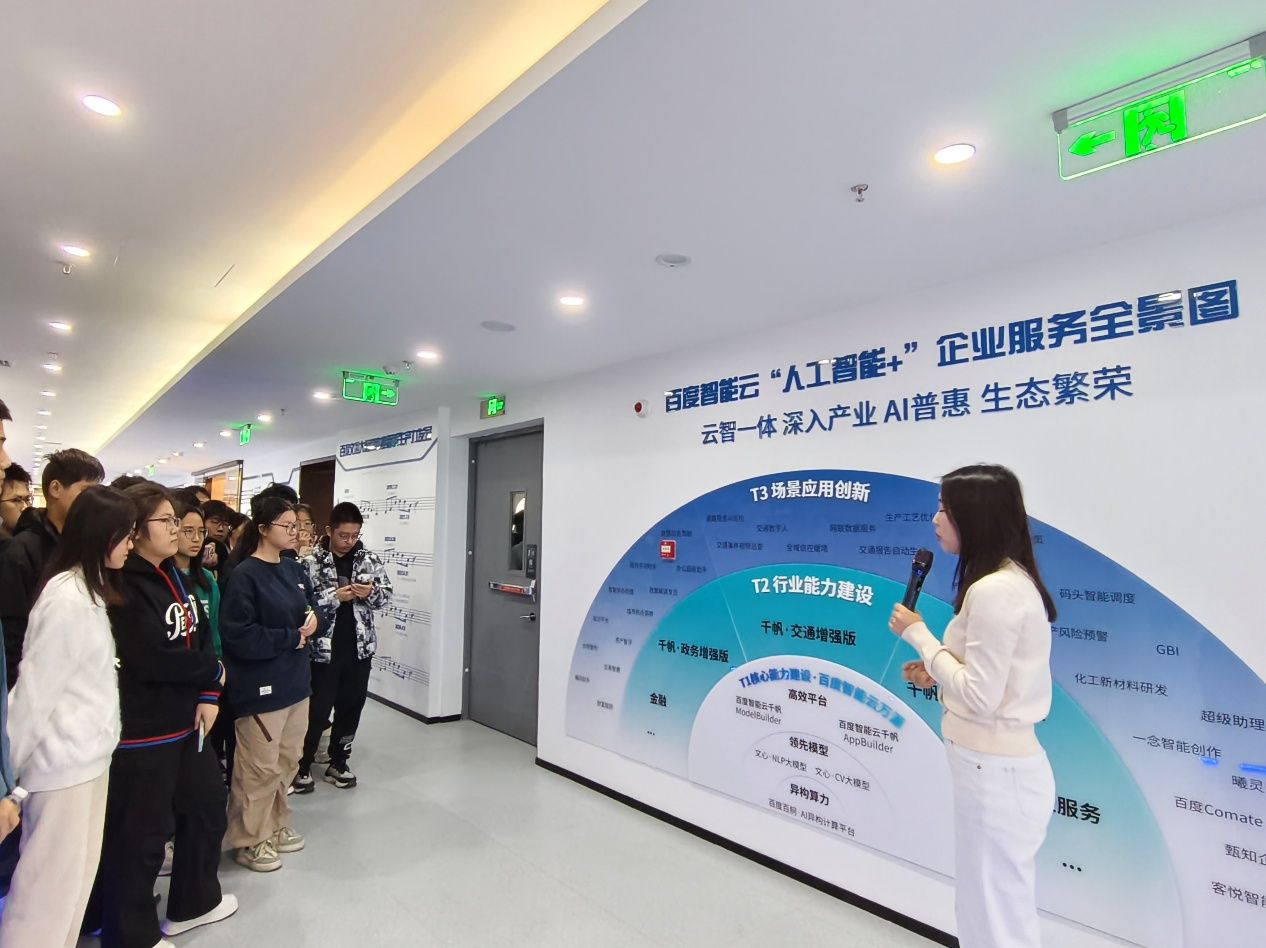 随后,师生共同观看了百度智能云宣传片,全面了解百度在人工智能基础设施、模型能力建设以及行业解决方案方面的整体布局,进一步加深了对人工智能产业生态和技术发展趋势的认识。