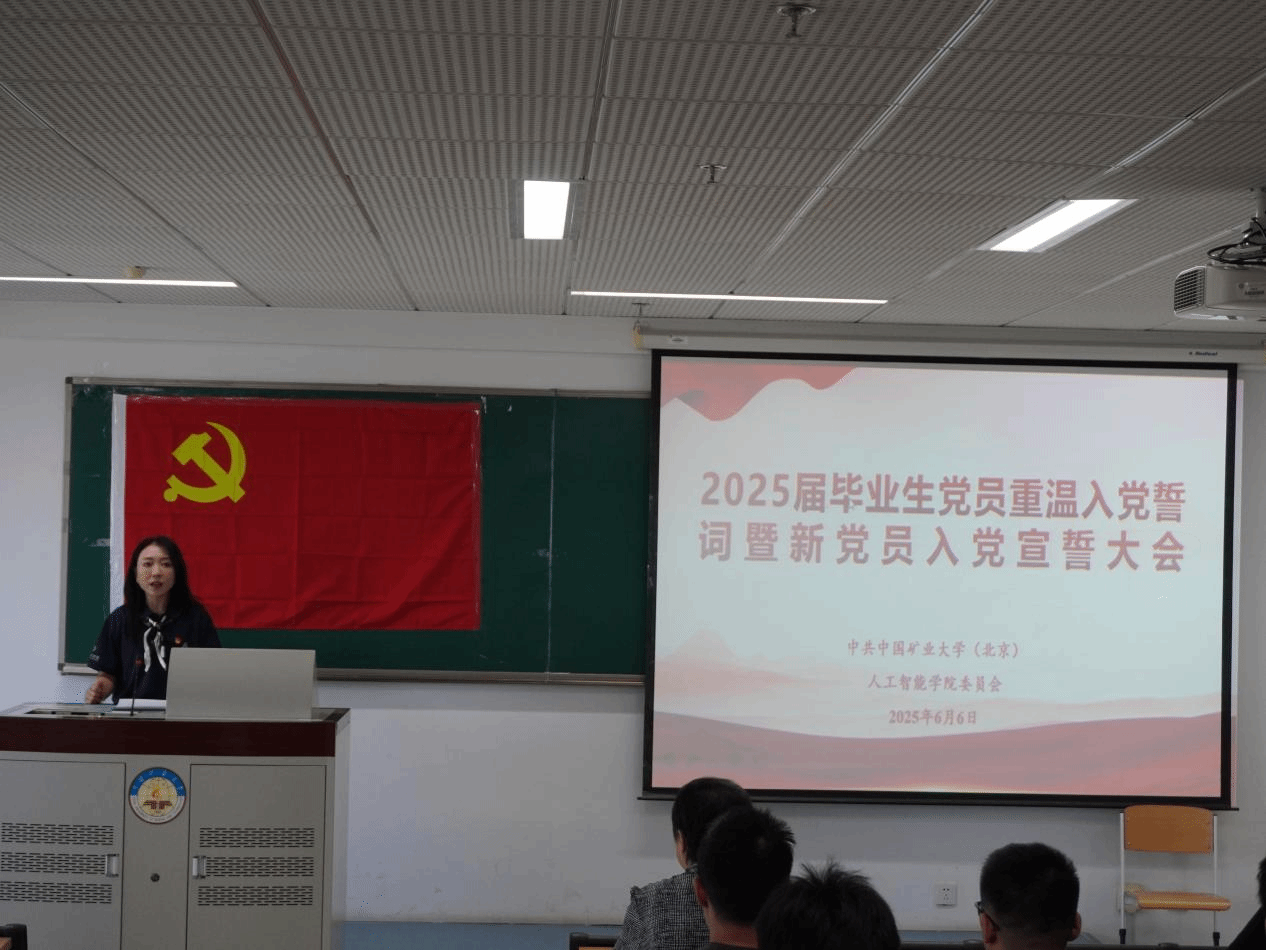 为深化广大毕业生党员的理想信念教育,提升政治素养与党性修养,6月6日上午人工智能学院在逸夫楼717隆重召开2025届毕业生党员重温入党誓词暨新党员入党宣誓大会。学院党委书记张晓红,毕业生辅导员,全体2025届毕业生党员以及2024-2025学年新发展党员参加会议。会议由学院正处级专职组织员夏云主持。