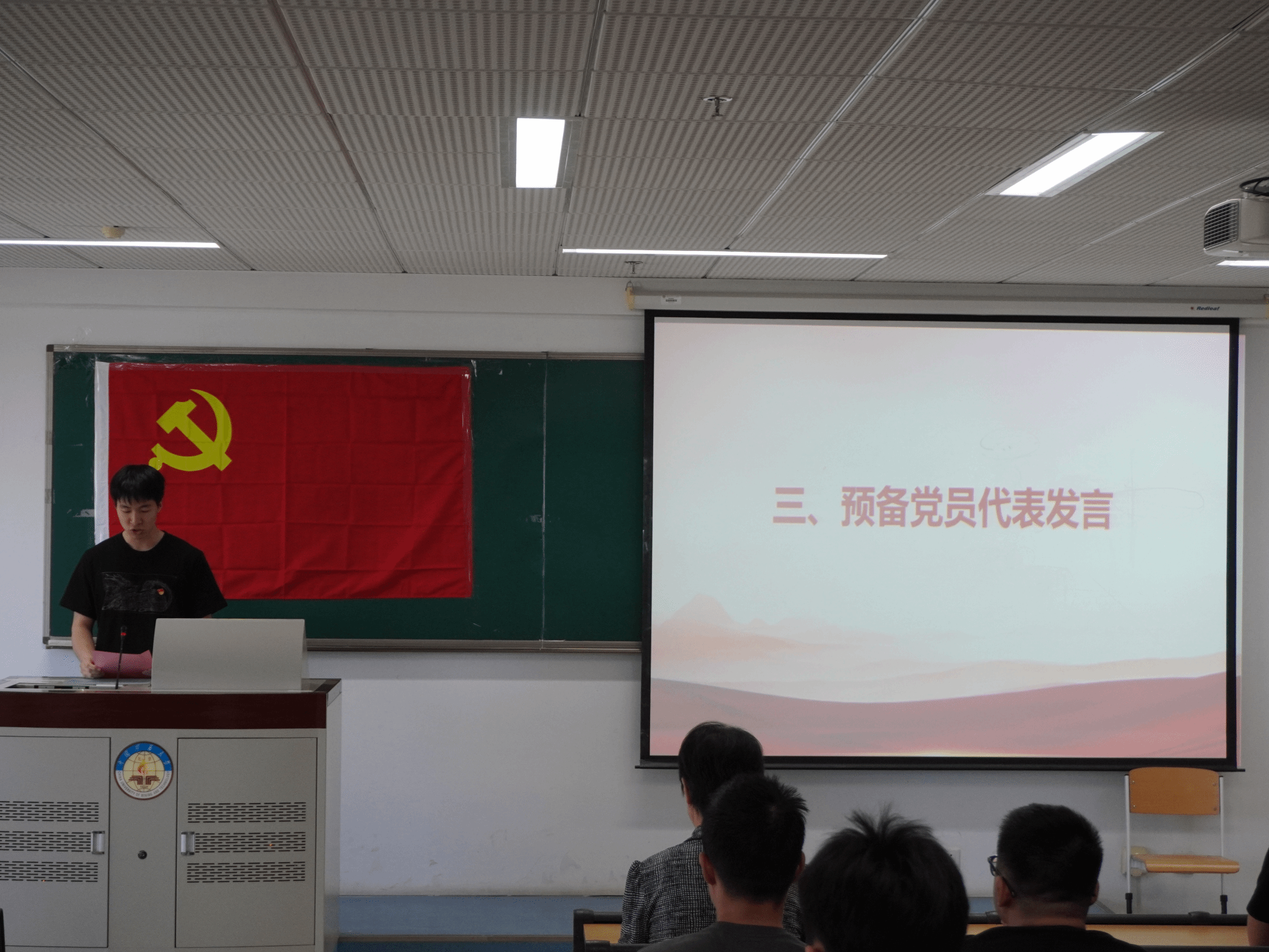 接下来,毕业生党员代表高轩同学和新发展党员代表龚腾飞同学发言。他们分享了自己的入党经历和成长历程,激励党员们要珍惜党员身份,不断学习和提高,在未来的学业和工作岗位上取得更大的成绩。