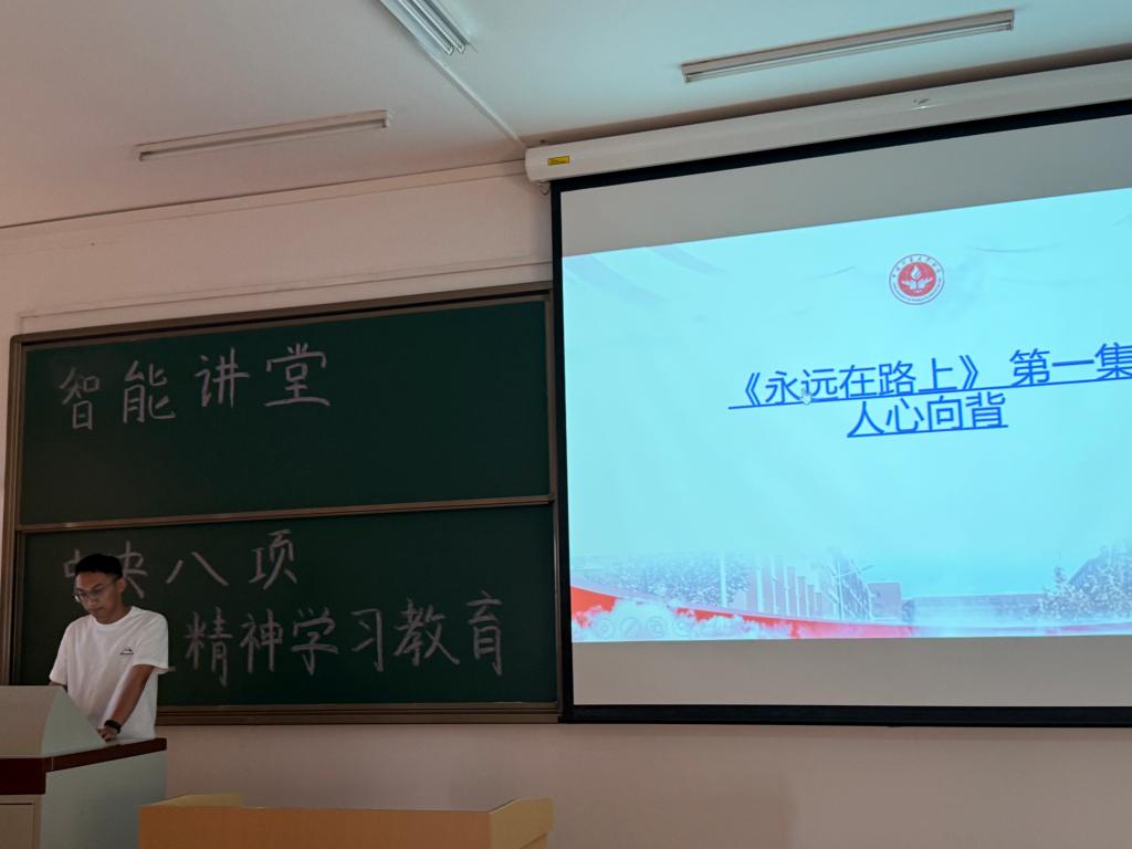 本次活动以学习中央八项规定精神为核心,组织观看专题片《永远在路上》第一集《人心向背》,引导青年党员筑牢信仰根基,强化纪律意识。