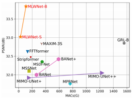 在传统的图像运动模糊去除任务中,由粗到细的多尺度解决方案已经得到了广泛应用,但在深度学习的背景下,多尺度与单尺度的算法相比反而具有劣势。因为多尺度算法不仅要使用更复杂的模块进行特征融合,还需要额外的低可信度的多分辨率图像。为了解决这些问题,这篇论文提出了一种新颖的多尺度网络结构,它以单个图像为输入,并输出多个分辨率的预测,从而简化了多尺度解决方案的复杂度。其次,考虑到真实世界中的运动模糊存在轨迹连续性,这篇论文设计了可微小波变换模块,关注从模糊图像到清晰图像之间逐级转换的方向性和频率特征,促进对真实的模糊的恢复。最后,在多个数据集上进行了广泛的实验验证,结果表明,通过使用这篇论文提出的方法,真实场景的运动模糊问题得到了很好地解决,且在计算量和运行效率上优于现有的先进方法。